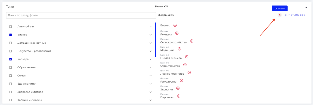 Таргетинги добавленные в ту или иную категорию могут быть выгружены из платформы в формате .txt.